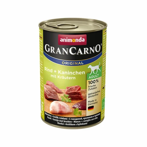 Animonda GranCarno Original Adult ist ausgewogenes, schmackhaftes und gesundes Nassfutter für ausgewachsene Hunde. Es enthält zu 100 % frische Zutaten und ganze Fleischstücke.