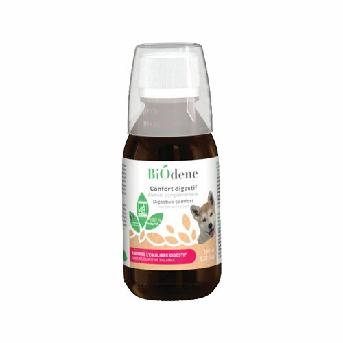 Digestive Comfort von Biodene enthält pflanzliche Inhaltsstoffe zur Unterstützung der Verdauung Ihres Hundes. Diese Ergänzung trägt auch zu einer gesunden Darmflora bei. Dieses Produkt kann bei einer Ernährungsumstellung oder einem empfindlichen Darm verwendet werden.