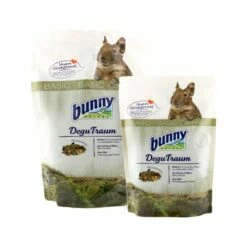 Bunny Nature Degu Traum Basic enthält alle Nährstoffe, die Ihre Degus benötigen. Dieses Alleinfuttermittel ist auf der Basis von verschiedenen Arten Gräsern, Kräutern, Gemüse und Blüten zusammengestellt worden. Bunny Nature Degu Traum Basic ist in einer Packung mit 600 g und mit 1,2 kg erhältlich.