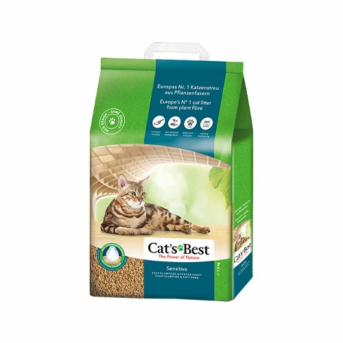 Speziell für empfindliche Katzen: Cat’s Best Sensitive Katzenstreu. Die Katzenstreu ist zu 100 % biologisch abbaubar und besteht aus 100 % natürlichen aktiven Holzfasern. Dank der Holzfasern fühlt sich die Füllung auf den Pfoten wunderbar weich an. Die grünen Gemüseperlen wirken als natürlicher Geruchsblocker. Keine unangenehmen Gerüche mehr! Die Füllung bildet extra feste Klumpen, so dass sie leicht zu entfernen sind. Die Klumpen können in der Toilette oder im Bioabfallbehälter entsorgt werden.