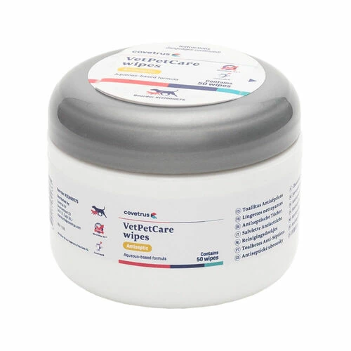 CVET Wipes Reinigungstücher mit Climbazol sind Feuchttücher auf Wasserbasis. Die festen Baumwolltücher tragen zu einer gesunden Hautbarriere bei. Geeignet für die empfindliche Haut von Hunden oder Katzen.