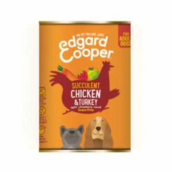 Adult – Huhn & Truthahn von Edgard & Cooper ist ein herrliches und komplettes Nassfutter für Ihren erwachsenen Vierbeiner. Die Rezeptur enthält Stückchen aus frischem Hühnchen und Truthahn. Dieses Fleisch wurde nicht verarbeitet, übergart oder getrocknet, das wäre nämlich schwieriger für Ihren Hund zu verdauen. Diese Nahrung ist getreidefrei und wurde mit einer köstlichen Mischung aus Gemüse, Früchten und Kräutern angereichert.