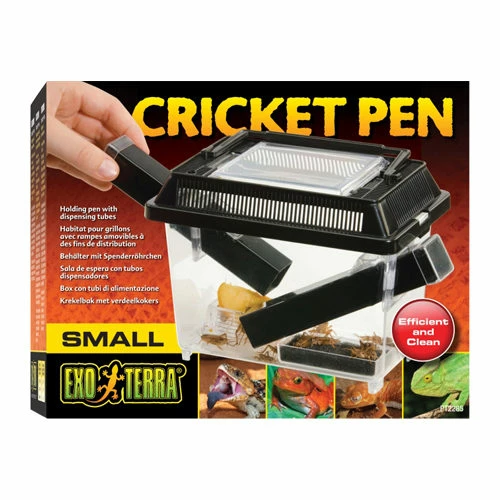 Der Exo Terra Grillenbehälter ist eine voll ausgestattete Pflegestation mit Spenderröhren für die Anzucht und Haltung von Grillen. Das Set enthält einen Futter- und Trinknapf. Der abnehmbare Deckel sorgt für gute Belüftung. In der Box sind praktische Röhrchen, die den Grillen als Versteck dienen. So können Sie die Spenderröhrchen einfach entnehmen und die Grillen in ein Terrarium umsetzen.
