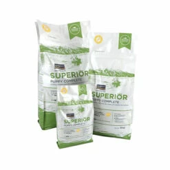 Um Ihrem jungen Hund zusätzliche Unterstützung zu bieten, enthält Superior Puppy Complete außerdem eine Reihe weiterer Inhaltsstoffe. Zu diesen zählen beispielsweise Grünlippmuscheln, die eine natürliche Quelle für Glucosamin und Chondroitin darstellen. Beide Stoffe fördern die Gelenke und Knorpel Ihres Hundes. Die probiotischen Fasern aus norwegischen Seealgen tragen zur optimalen Verdauung bei. Spirulina ist reich an natürlichem Vitamin A. Vitamin A fördert das Sehvermögen, trägt zur Entwicklung der Knochen bei und unterstützt das Immunsystem.