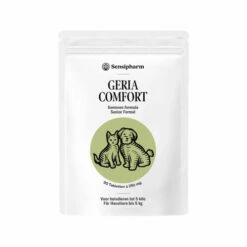 Dieses Nahrungsergänzungsmittel wirkt vorbeugend gegen Altersbeschwerden bei Hunden und Katzen, wie z. Bsp. Verlust von Gehör und Sehstärke, Zahnverfärbungen, Haarausfall, mattes und graues Fell, unregelmäßiger Stuhlgang, eingeschränkte Mobilität und Leistungsfähigkeit, verringerte Libido, Impotenz. Geria Comfort hat einen positiven Effekt auf die Konstitution und den Körperbau der Nachkommen und empfiehlt sich daher bei Zuchttieren. Geria Comfort wird empfohlen bei allen Hunden und Katzen ab dem fünften Lebensjahr.