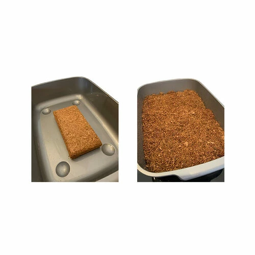 Huskaloo ist ein ökologisches und kompaktes Katzenstreu, das aus Kokosnussschalen hergestellt wird. Die Kokosnussschalen werden dehydriert und zu praktischen Ziegeln gepresst. Diese Steine sind kompakt, viel leichter als Katzenstreu aus Ton und völlig natürlich. Wenn Sie warmes Wasser darüber gießen, dehnt sich der Block aus und Sie können ihn über dem Katzenklo verteilen. Es ist angenehm weich für die Pfoten Ihrer Katze und außerdem geruchs-, chemikalien- und staubfrei. Diese Kokosnussschalenbasis ist bis zu zehnmal saugfähiger als andere Katzenstreueinlagen und kann nach Gebrauch einfach auf den Kompost gegeben werden.
