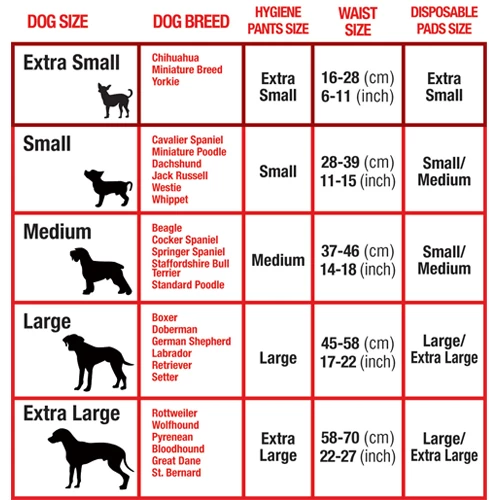 | X-Small | 16 – 28 cm | Chihuahua, Yorkie |