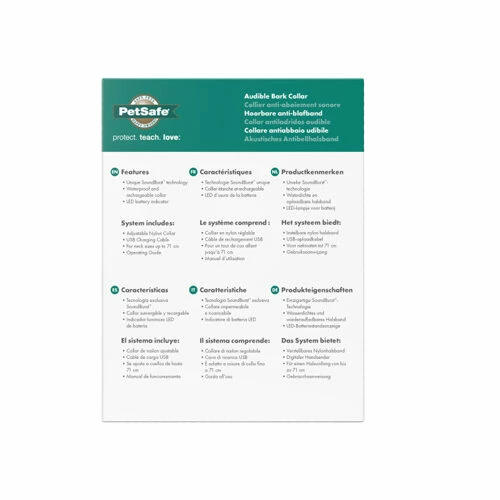 Das Petsafe Anti-Bell-Halsband erkennt Vibrationen und auch Geräusche, um eine akustische Korrektur bei zu viel Bellen zu ermöglichen. Das Geräusch ähnelt dem Sprühen mit einer Spraydose und lenkt den Hund vom Bellen ab. Es gibt 10 Stufen zur automatischen Anpassung der Dauer der akustischen Stimulation. Das Halsband wird nur aktiviert, wenn Ihr Hund bellt, ohne versehentliche Aktivierung. Zusätzlich ist das Halsband wasserdicht und für den Innen- und Außenbereich geeignet. Das Halsband kann mit dem mitgelieferten USB-Ladegerät aufgeladen werden und hält etwa 40 Stunden. Das PetSafe Anti-Bell-Halsband ist für Hunde mit einem Gewicht von über 3,6 kg geeignet.