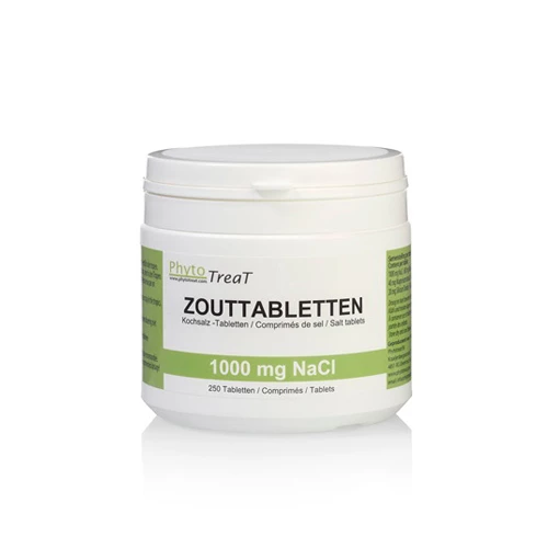 Die PhytoTreat Salztabletten (1000mg NaCl) sorgen für einen ausgeglichenen Elektrolythaushalt bei Ihrem Hund. Elektrolyte sind (mineralische) Salze, die in Körperflüssigkeiten gelöst sind. Hierzu gehören beispielsweise Natrium, Kalium, Magnesium und Chlor. Eine ausbalancierte Salzkonzentration trägt zu einem guten Flüssigkeitshaushalt bei und verhindert mögliches Austrocknen. Die Tabletten können auch für die Addisonkrankheit verwendet werden.