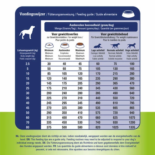 Die empfohlene Anwendungsdauer ist bis zum Erreichen des gewünschten Gewichts oder maximal 6 Monate. Wenn Sie das gewünschte Gewicht erreicht haben, können Sie zu Prins ProCare Standard Fit wechseln. Wenn Sie von einem knusprigen Futter auf ein gepresstes Futter umsteigen, raten wir Ihnen, sofort auf das neue Futter umzusteigen.