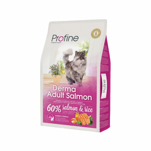 Profine Adult Derma – Katzenfutter – Lachs ist speziell auf die Bedürfnisse Ihrer ausgewachsenen Katze mit mittlerem bis langem Haar abgestimmt. Dieses Katzenfutter trägt zu einer schönen Haut und einem schönen Fell bei und ist durch den hohen Anteil an Lachs, nämlich 60 %, sehr schmackhaft.