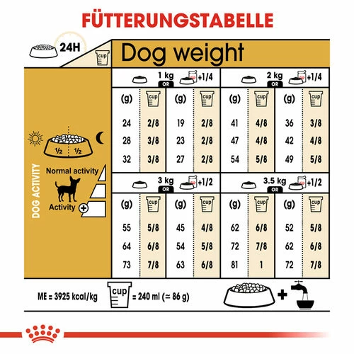 Royal Canin Chihuahua Adult ist ein rassespezifisches Futter für ausgewachsene Chihuahuas ab dem 8. Monat. Dieses Trockenfutter ist speziell auf die Größe Ihres Hundes abgestimmt. Die Nährstoffe im Futter reduzieren die Bildung von Plaque und Zahnstein und unterstützen die Verdauung Ihres Chihuahuas.