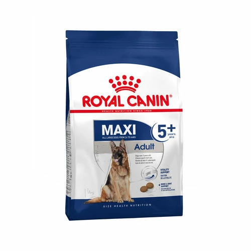 Halten Sie Ihren älter werdenden Hund mit dem Futter Maxi Adult 5+ von Royal Canin vital. Das Trockenfutter Maxi Adult 5+ wurde speziell für die großen Hunde von 5 Jahren und älter zusammengestellt. Diese ausgewogenen Hundebrocken tragen zur Vitalität, sowie zur Erhaltung von starken Knochen und geschmeidigen Gelenken bei.
