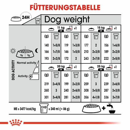 Royal Canin Medium Sterilised ist ein Hundefutter, das den Bedürfnissen kastrierter/sterilisierter Hunde entspricht. Kastration und Sterilisation führen zu Veränderungen im endokrinen System. Dies beeinflusst den Stoffwechsel und Ihr Hund benötigt weniger Kalorien. Ihr Hund wird jedoch weiterhin Appetit haben, was dazu führen kann, dass Ihr Hund zu dick wird. Mit diesem Futter hält Ihr Hund hingegen ein gesundes Gewicht!