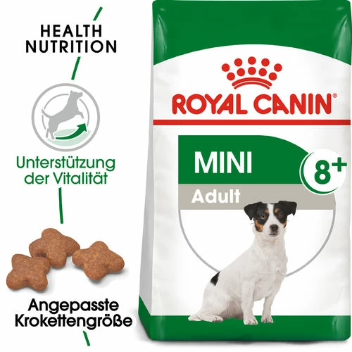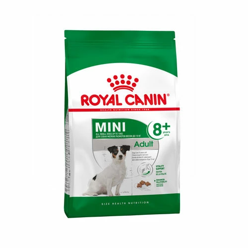 Halten Sie Ihren alternden kleinen Hund mit dem Royal Canin Mini Adult 8+ vital. Dieses Trockenfutter wurde speziell für kleine Hunde ab 8 Jahren entwickelt worden. Mini Adult 8+ ist für Hunde einer Rassen bis 10 kg geeignet und erfüllt die Bedürfnisse älterer Vierbeiner in vollem Umfang.