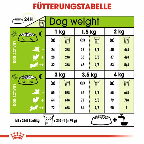 Ist Ihr kleiner Hund schon in die Jahre gekommen? Dann möchten Sie natürlich, dass er so lange wie möglich fit und vital bleibt. Royal Canin X-Small Ageing 12+ ist ein spezielles Futter für ältere, sehr kleine Hunde mit einem Körpergewicht von bis zu 4 kg. Dieses Trockenfutter kann in Wasser eingeweicht werden, damit Ihr Hund es leichter aufnehmen kann. X-Small Ageing 12+ unterstützt die Verdauung und das Herz Ihres treuen Begleiters. Die spezifischen Nährstoffe in diesem Hundefutter helfen zudem, die Bildung von Plaque und Zahnstein zu reduzieren.