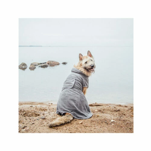 Manche Hunde können das einfach nicht: Warten, bis das Fell trocken ist. Für diese Hunde und zum Schutz Ihrer Möbel, Ihres Fußbodens oder Ihres Autos gibt es den RukkaPets Micro Light Bademantel. Dieser Hundebademantel schützt vor Wasserspritzern, wenn das Fell Ihres Hundes noch nass ist. Der Hundebademantel ist leicht, so dass Ihr Hund ihn nicht bemerken wird. Es ist leicht anzuziehen und sehr saugfähig. Dadurch wird Ihr Hund nicht nur schnell trocken, sondern kühlt auch nicht ab. Der breite Klettverschluss hält den Bademantel an Ort und Stelle und passt gut. Der Mantel kann an heißen Tagen auch als Kühlmittel verwendet werden. Spülen Sie den Bademantel in kaltem Wasser aus, wringen Sie ihn aus und ziehen Sie ihn Ihrem Hund an.