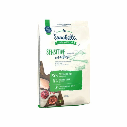 Sanabelle Sensitive ist ein hochverdauliches Futter für Katzen mit empfindlichem Magen-Darm-Trakt. Dieses Futter hat eine hohe Verdaulichkeit und eine hohe Nährstoffdichte. Das bedeutet, dass die Nahrung den Magen und den Darm weniger belastet. Der hohe Anteil an tierischen Proteinen aus Geflügel verleiht diesem Futter eine hohe Schmackhaftigkeit.