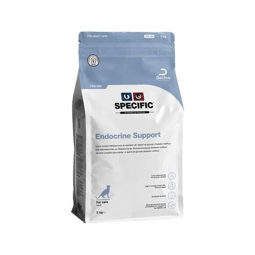 Specific Endocrine Support FED ist ein Trockenfutter, das speziell für Katzen mit Diabetes entwickelt wurde. Bei Katzen lösen Aminosäuren die Freisetzung von Insulin anstelle von Glukose aus. Deshalb hat dieses Lebensmittel einen sehr niedrigen Kohlenhydrat- und einen hohen Proteingehalt.