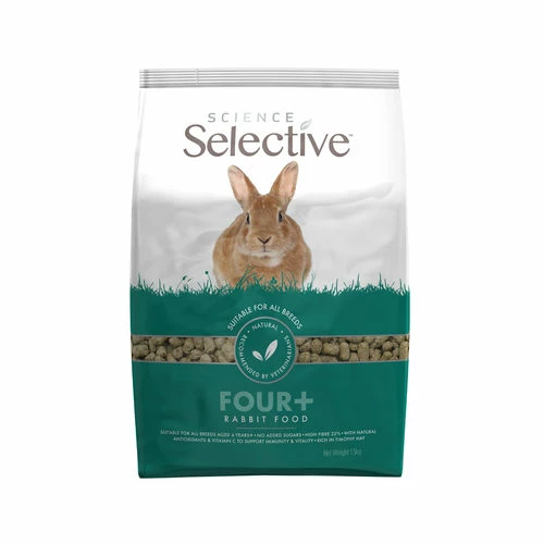 Dank dem geringen Anteil an Zucker und Proteinen wird Übergewicht bei den zunehmend weniger aktiven Kaninchen vorgebeugt. Supreme Science Selective Mature Rabbit enthält zudem Wiesen-Lieschgras und Thymian, welche den Appetit stimulieren. Dies ist vor allem wichtig für ältere Kaninchen, die mit zunehmendem Alter häufig weniger Appetit haben. Das Kaninchenfutter setzt sich auch aus zahlreichen Inhaltsstoffen zusammen, die reich an Antioxidantien sind und somit das Immunsystem unterstützen, wie Heidelbeere, Ginko-Extrakt und Extrakte von grünem Tee.