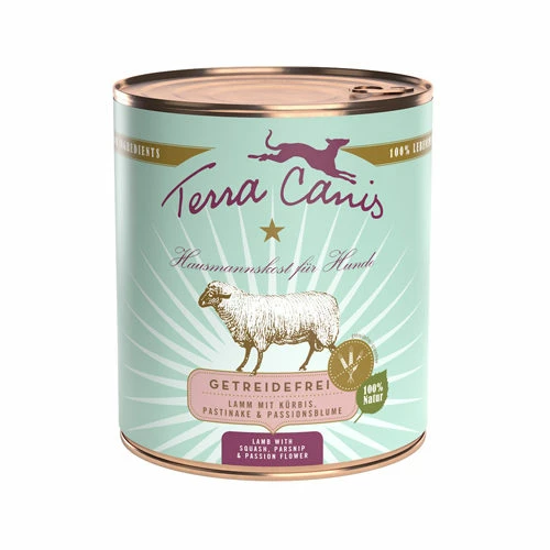 Terra Canis Getreidefrei Lamm ist ein laktose- und getreidefreies Nassfutter, reich an frischen Zutaten wie Lammfleisch, Kürbis, Passionsblume und Pastinaken. Das Futter enthält weder Konservierungsmittel und Zucker noch Aromen, Farb- und Geschmacksstoffe. Aus diesem Grund kann Ihr Hund diese gesunde, frische Mahlzeit wirklich genießen.