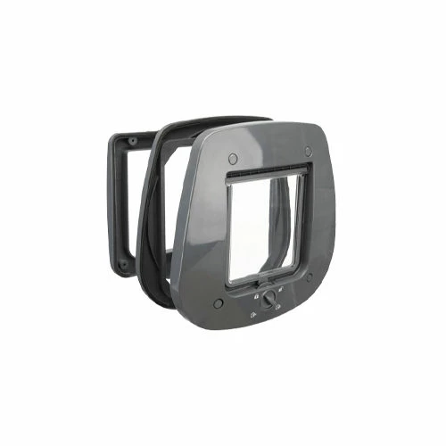 Trixie 4-Wege-Katzenklappe für Glas ist eine Katzenklappe mit einer durchsichtigen Klappe, die in ein einziges Glas eingesetzt wird.