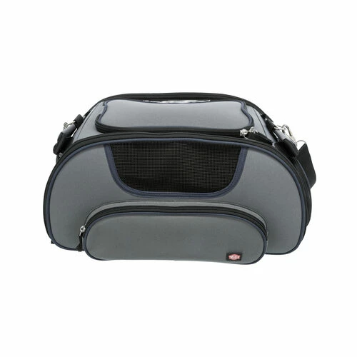 Die Airline Tasche Wings von Trixie ermöglicht es Ihnen, Ihren Hund bequem und sicher mit dem Flugzeug zu transportieren. Die Größe des Gepäckstücks wird von fast allen Fluggesellschaften akzeptiert. Die Tasche kann am Trolley befestigt und von vorne, von den Seiten und von oben geöffnet werden. Sie können den Airline Bag an den beiden Griffen und am Schultergurt anheben. Die Bodenplatte ist gefüttert, wasserdicht und abnehmbar. Außerdem ist die Tasche aus formstabilem Polyester gefertigt und verfügt über eine Außentasche.