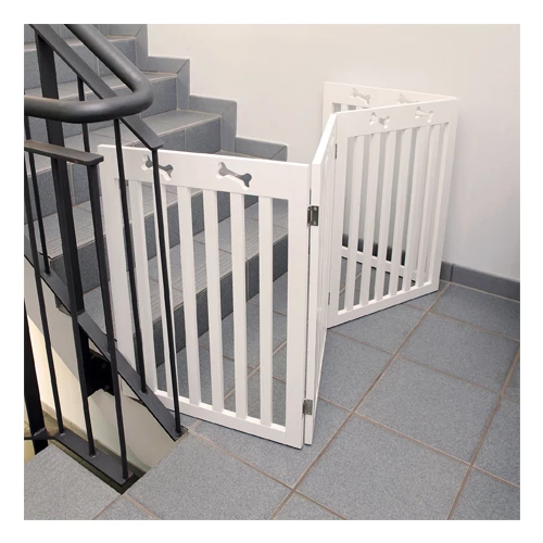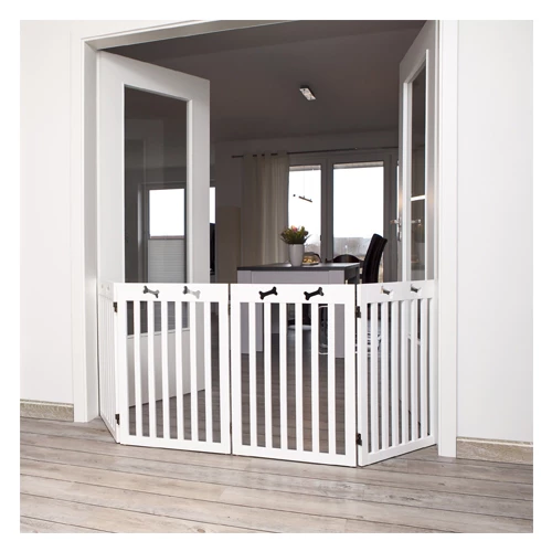 Das Hunde-Absperrgitter von Trixie ist ein Gestell, womit Sie beispielsweise einen Raum oder eine Treppe abschirmen können, um den Zutritt von Ihrem Hund zu verhindern. Es gibt Hundeabsperrgitter, die für kleine und für große Hunde geeignet sind. Da der Zaun aus mehreren Gitterpaneelen und Scharnieren besteht, kann er leicht zusammengefaltet und verstaut werden.