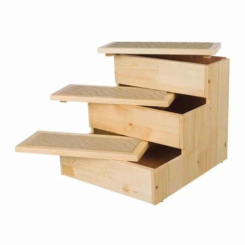 Speziell für Tiere mit Rücken- und Gelenkproblemen gibt es die Trixie Friends On Tour Pet Staircase. Diese Trittleiter unterstützt die Gelenke des Tieres, so dass es sich nicht anstrengen muss, auf etwas zu klettern. Mit der Haustiertreppe von Trixie zum Beispiel ist es jetzt einfacher, auf das Bett oder auf die Couch zu steigen. Die Treppe ist mit Teppichboden ausgelegt, um einen besseren Halt zu gewährleisten. Die Treppe hat abnehmbare Stufen, so dass Sie sie auch als Stauraum nutzen können.