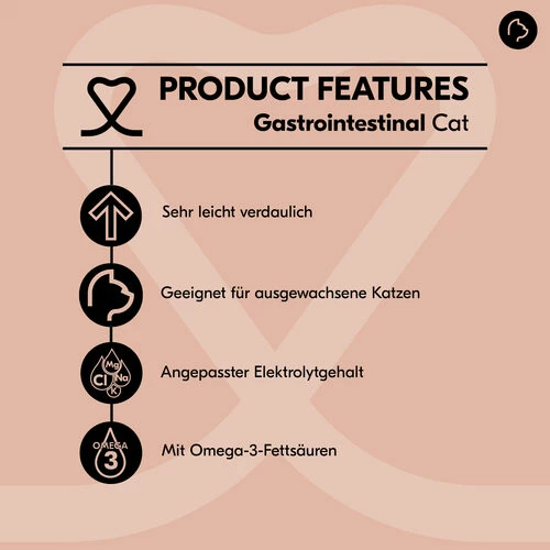 Eine ausgewogene Ernährung ist wichtig, damit Ihre Katze gesund und fit bleibt. Aber auch wenn Ihre Katze an einer Krankheit leidet, ist Vetality zur Stelle, um sie zu unterstützen. Vetality wurde von Tierärzten entwickelt, um die Bedürfnisse Ihres Tieres optimal zu erfüllen. Die besten Ergebnisse erzielen Sie, wenn Sie nur dieses Futter füttern. Verteilen Sie die Tagesmenge auf zwei oder mehr Mahlzeiten am Tag. Wenden Sie sich an Ihren Tierarzt, wenn Sie den Verdacht haben, dass Ihr Tier ein Problem hat, und Sie Vetality Gastrointestinal verabreichen möchten.